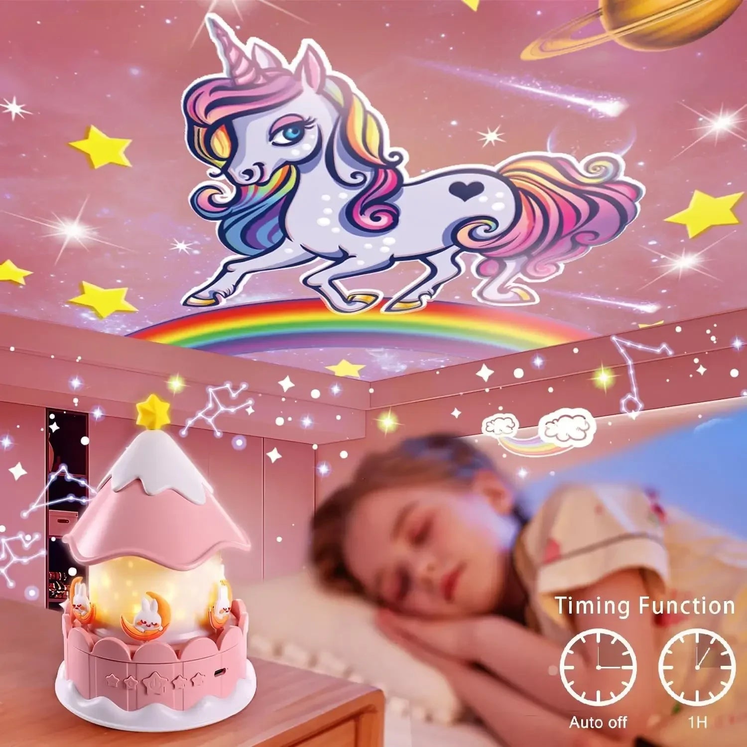 The star projector adopts a cute merry-go-round-like shape that will satisfy both adults and children.